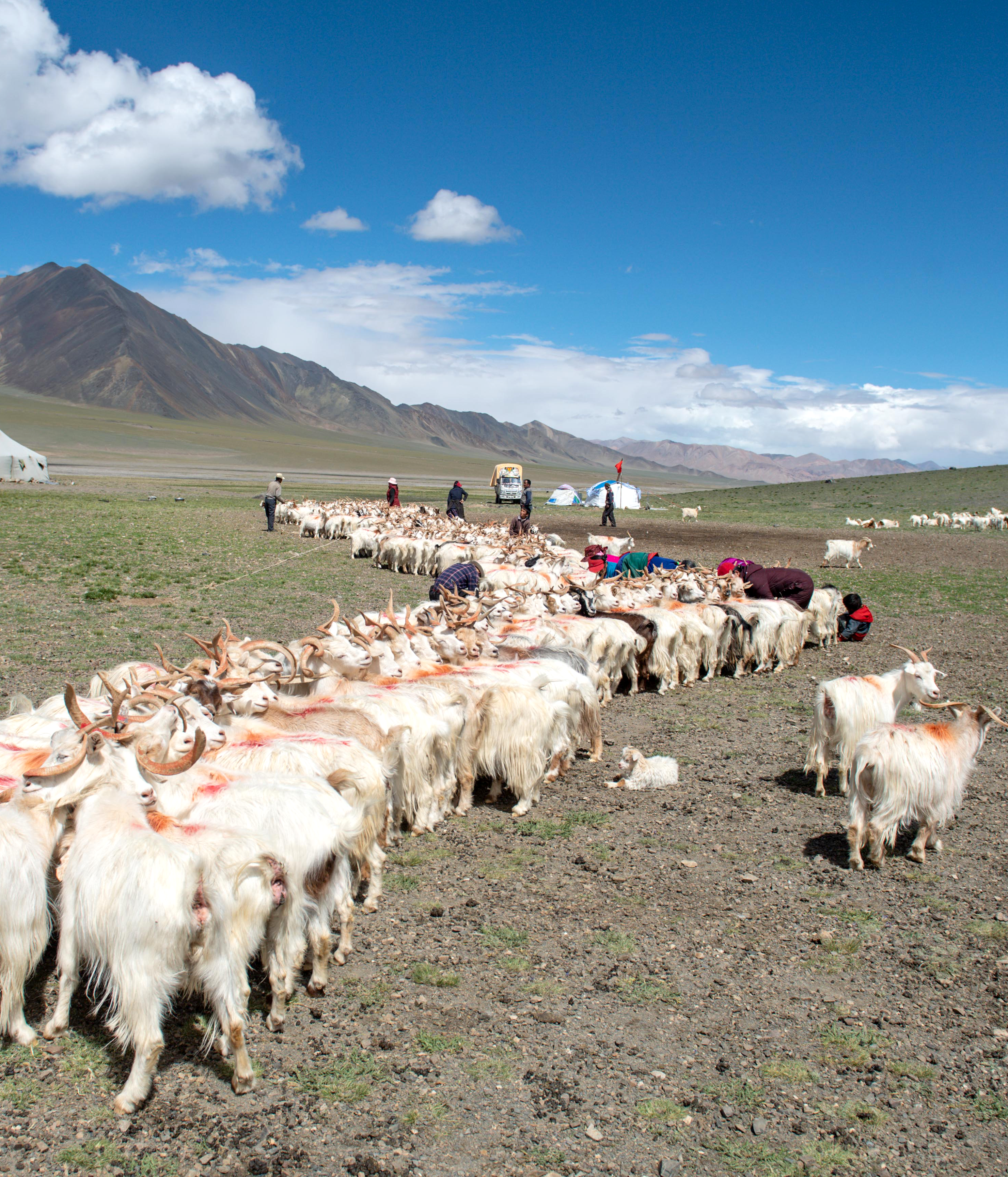 Down producing goat growth in china's Inner Mongolia,qinghai,Tibet,Mongolia and Iran,such as temperature difference is bigger,the sun long semidesert areas,due to the special environmental factors,determine the number of down producing goat is very less.According to statistice,the world's cashmere annual output of 10000 tons,nearly half of wool from China. A goat for a year only can produce 50-80 grams dehaired wool,that is to say 5 goat wool produced by a year only an ordinary cashmere sweater can be made up.Cashmere precious is not only because it is rare,more important is made of various proerties of products,it si the wool fiber and other products.Especially in China's Inner Mongolia and Tibet region of velvet,its elastic,length,fiber fineness,color and so on various aspects came from other overseas regions,by foreign merchants praise highly is the best Chimese Cashmere,known as the"diamond fiber".